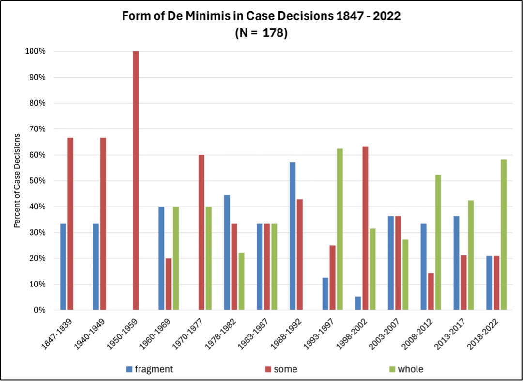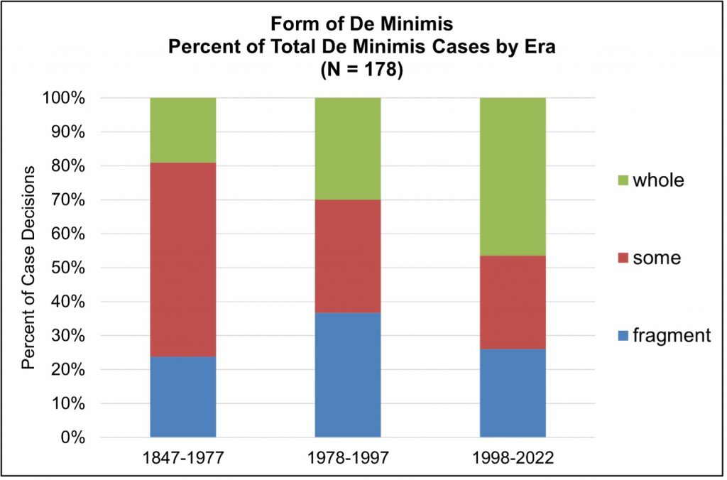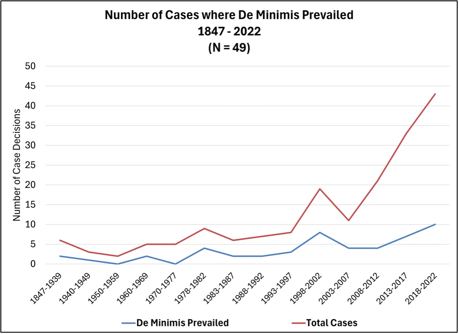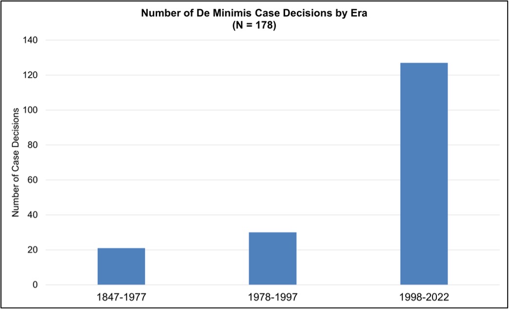 Our comprehensive dataset of de minimis cases between 1847 and 2022 includes only 178 court opinions. (We discuss the collection and coding of these cases in Part III.) At first, we were surprised by this small number. But in the context of assessing the contested evaluation of a “trifle,” finding 178 examples is significant.
