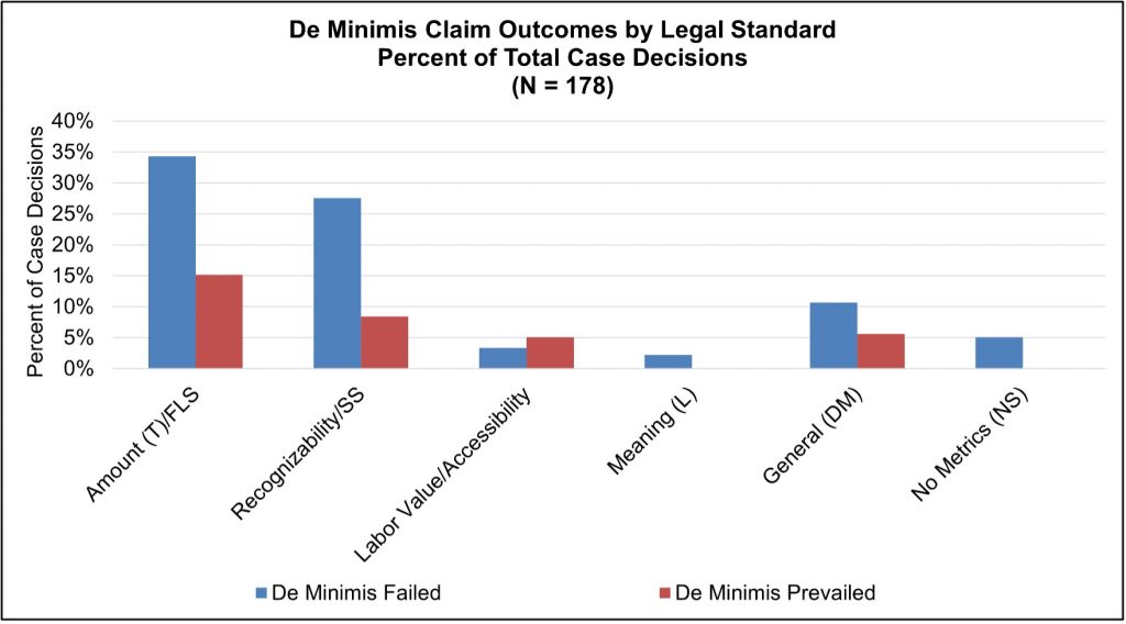 316. Prevailing de minimis outcomes are those with clear wins. Failed de minimis outcomes are those with clear rejections of the challenge. The 15 cases where there was no outcome, or it was split are not included in the figures.