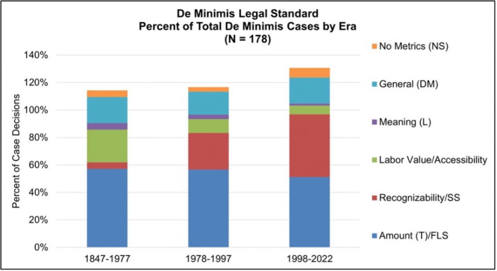 305. The percentages by era total more than 100% because multiple standards can co-occur in a single case. For detailed descriptions of the factors, see Table 4 (De Minimis Legal Standard).